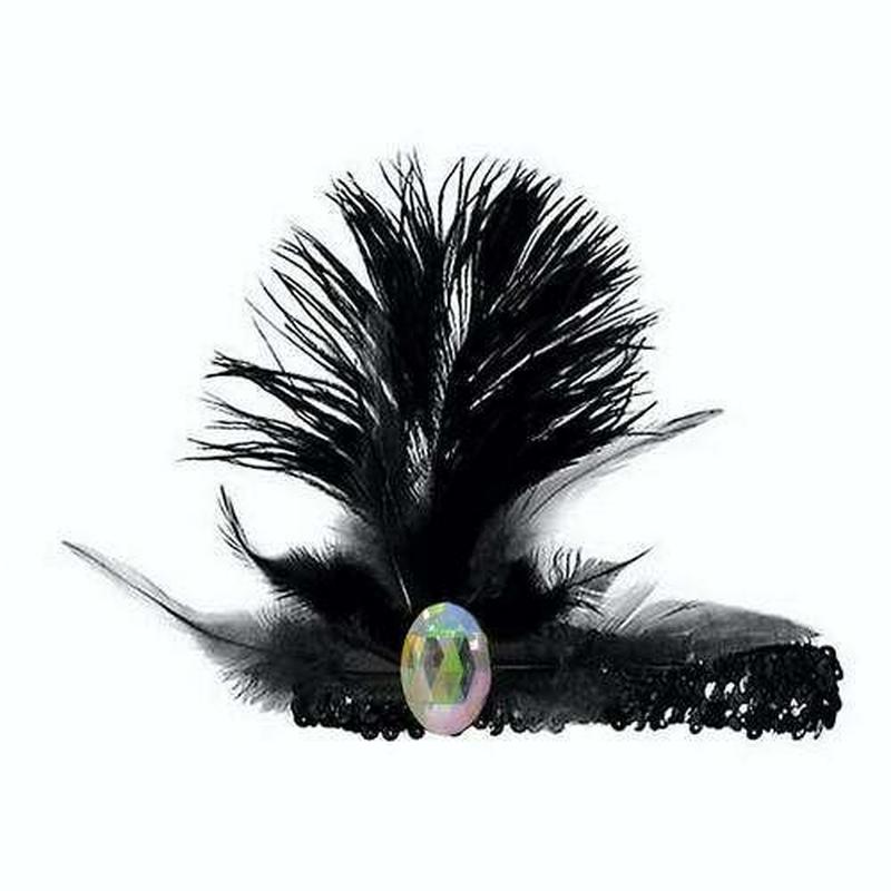 Повязка-резинка с чёрными перьями и стразом на гангстерскую вечеринку.