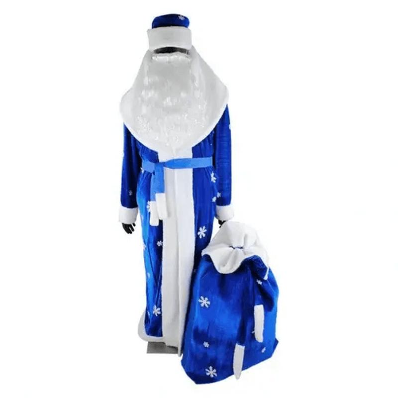 Святий Миколай. Костюм карнавальний 19-1013-1 У костюмі входить шапка, борода, халат, мішок для подарунків. Халат із поясом, прикрашений білими сніжинками, підійде для образу Дід Мороз, Морозко. Довжина – 150 см. Напівобхват грудей – 67 см. Розмір – 48-52.