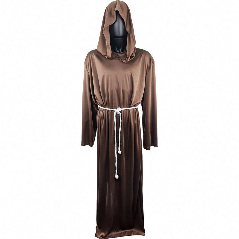 Балахон Монах коричневий 21-532BR Матеріал: трикотаж Опис: Розмір універсальний. Довжина від капюшона – 155 см, висота капюшона – 48 см. Напівобхват грудей – 77 см (розтягується), довжина рукава – 70 см. Велика коричнева карнавальна накидка (плащ) з капюшоном, що одягається через голову, підв'язується за допомогою пояса. Карнавальні образи: чернець, відьмак, злий чаклун, представник темних сил.
