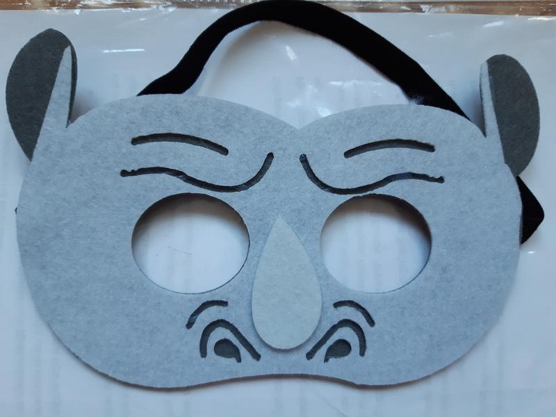 Маска Носоріг. Розмір: 11*18см. Колір: сірий. Матеріал: фетр.