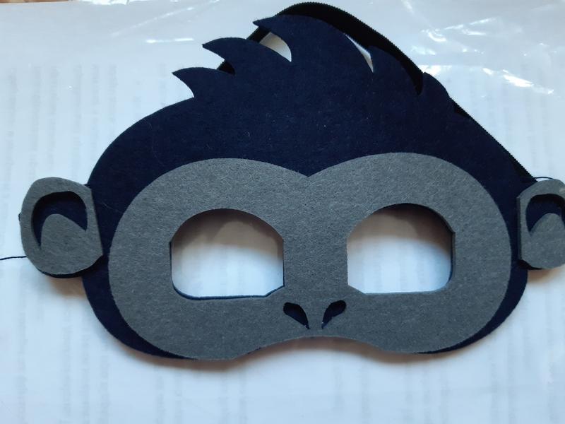 Детская маска из фетра обезьяна 19 на 10 см серо-черный