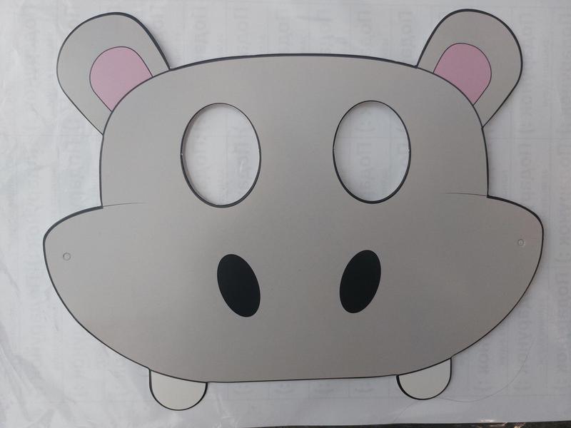 Маска Бегемот. Размер: 23 на 18 см. Цвет: серый. Материал: картон.