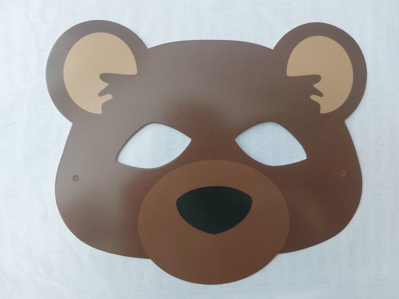 Маска Медведь. Размер: 19 на 17 см. Цвет: коричневый. Материал: картон.