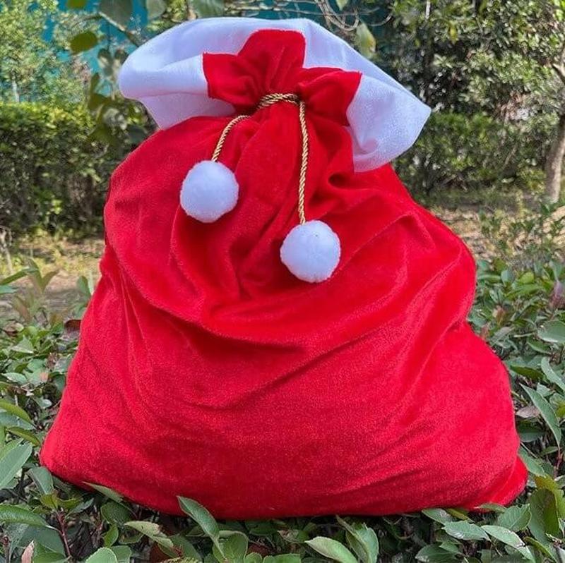 Мішок св.миколая/д.мороза/санти (70х50 см), червоно-білий+помпони еліт
