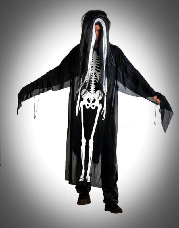 ## Костюм-накидка Монстра, Смерті, Скелета, Примари. Дорослий Хеллоуїн. Унісекс Код 08468 Накидка універсального розміру, має довжину від плеча 120 см Костюм-накидка закриває тіло з усіх 4-х сторін, включаючи руки та при цьому залишає можливість вільних рухів та «польоту» повітряної тканини. Костюм – унісекс – підходить для жінок, чоловіків, а також для підлітків при відповідному зрості дитини. Також костюм може бути незамінним для людей із зайвою вагою чи пишними формами у тому випадку, якщо вони хочуть приховати у цей день особливості та переваги своєї повсякденної фігури. Костюм-накидка виготовлена з ніжної поліестерової тканини, приємної до тіла, напівпрозорої. На чорному тлі – виразний та контрастний скелетний принт Костюм рекомендується як карнавальний наряд на Хелловін для створення образів Монстра, Зомбі, Кощія, Мерця, Примари, Привиди, інших «страшних героїв». На тематичній вечірці, присвяченій страшилкам, Ваш образ буде найстрашнішим та найоригінальнішим. Примітка: цей костюм можна доповнити додатковими аксесуарами: - Маскою типу «Крик» з чорним капюшоном, що закриває шию, обличчя та всю голову з усіх боків, - Чорними колготами з принтом білих кісток, - Чорною бородою та вусами для невпізнання, - Чорними рукавичками «скелетними» з білими кістками пальців кистей рук - Довгою чорною «диявольською перукою» та ін. Звертайтеся за вайбером до нашого менеджера – він допоможе вам підібрати необхідні атрибути для покращення образу.