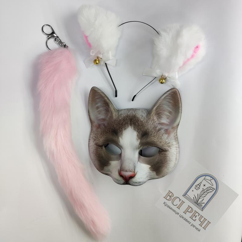 Набір для квадробіки (маска 3д, хвіст на карабіні, вушка) костюм котика
