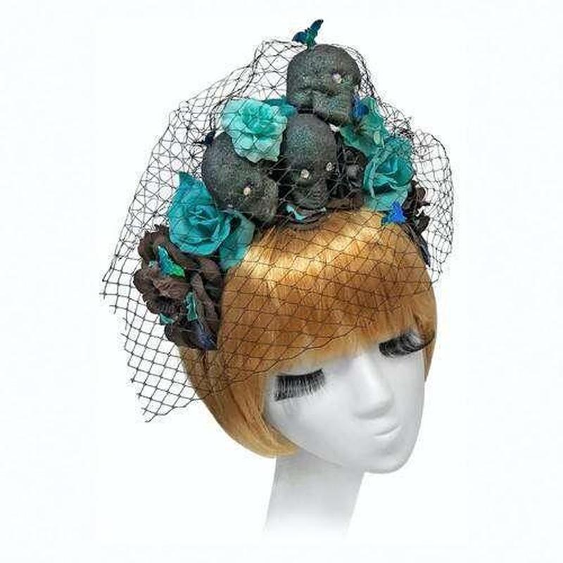 АУРЕЛІЯ. Обруч у готичному стилі 18-868 Обруч із трояндами та трьома черепами підійде Вам для карнавального образу Санта Муерте (Санта Муерте, Santa Muerte) на костюмовану вечірку, Хелловін. Висота композиції – 8 см.