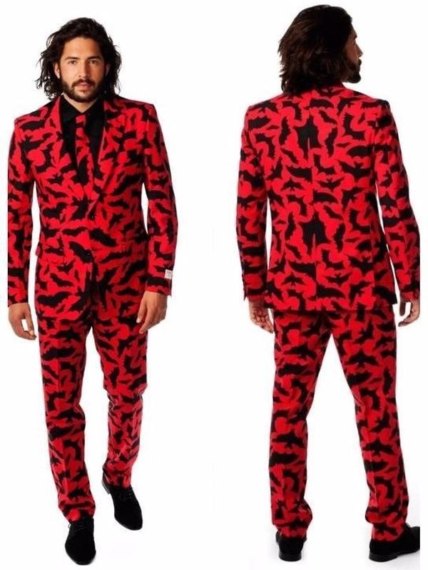 Чоловічий дорослий карнавальний новорічний костюм, червоний принт летюча миша halloween хелловін бренд та склад на фото, колір як на першому фото, в одному розмірі, але орієнтуємося на виміри, можливо маломірять Заміри: Піджак: Плечі 46 см. Ширина горловини 18 см, плеча 15 см напівохват грудей 56 см, пояса – 51 см, внизу – 57 см, Довжина від плеча 78 см Довжина рукава від плеча 64 см напівохват біцепса 20 см, манжета 14 см, Штани: напівобхват пояса 44-45 см, стегон 58, штанини 32/22/20 см, Довжина від пояса по бічному шву 104 см, крім того пояс 3,5 см крокова довжина 84 см посадка від пояса 22/37 см. є кишені, не тягнеться. продається без краватки