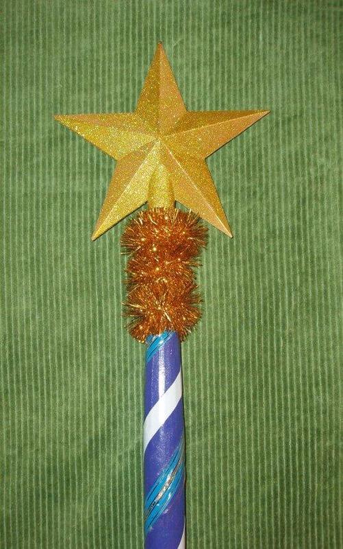 ## Посох Св. Миколая/Діда Мороза дерев'яний цільний. Код 14073 Увага: Вказана вартість виробу не враховує спеціальну подовжену картонну упаковку та захисні матеріали, які необхідні для безпечного транспортування посоха службами доставки. При відправленні даного товару, окрім вартості самого посоха, необхідно додатково сплатити 75 грн. за комплексний захист упаковки та інші пакувальні матеріали, що забезпечують його безпечне перевезення. ПОСОХИ ДЕРЕВ’ЯНІ ЦІЛЬНІ (Серія ПДЦ) Посохи цієї серії вирізняються універсальністю застосування. Вони підійдуть як досвідченим професійним акторам, які грають роль Діда Мороза, так і початківцям-аматорам. Серія ПДЦ пропонує широкий вибір моделей, які гармонійно доповнять як дорогі, розкішно оздоблені костюми, створені на замовлення, так і більш прості, серійні костюми масового виробництва. Цінова категорія цієї серії також надзвичайно різноманітна – від бюджетних моделей зі скромними навершями або взагалі без них, до елітних, щедро прикрашених високоякісними декоративними матеріалами та ефектними навершями. Усі посохи цієї серії об’єднує матеріал виготовлення (дерево) та конструкція: усі моделі є цільними, тобто нерозбірними. Посохи серії ПДЦ оцінять покупці, які віддають перевагу міцним, надійним та відносно важким (порівняно з пластиковими) посохам, а також ті, кому не потрібні складні конструкції, і цільний посох повністю відповідає їхнім вимогам. Завдяки цільній основі, вироби цієї серії відрізняються надзвичайною довговічністю. Обережність потрібна лише у відношенні навершя, оскільки за ним не завжди легко встежити при довжині посоха майже два метри. Також акуратного поводження потребує декоративне покриття основи, що, втім, стосується усіх серій, конструкцій та декоративних рішень. Дерев’яні посохи цієї серії складаються з цільної дерев’яної основи діаметром від 30 до 42 мм, залежно від конкретної моделі. Дерев’яна основа посохів ПДЦ виготовляється з твердих листяних порід деревини, попередньо висушеної у стандартних умовах, а потім додатково висушеної у щільних зв’язках (для запобігання деформації) при температурі 25 градусів протягом 6-8 місяців з використанням штучної припливно-витяжної вентиляції та строгим контролем температурного режиму процесу сушіння. Після шліфування поверхні, основа посоха покривається плівкоутворюючою грунтовкою, а потім тонується акриловою пігментною фарбою бажаного кольору та відтінку. Окремі моделі додатково покриваються фінішним лаком. Часто використовується металізована фарба японського (на основі лаку) або американського (безлакова) виробництва. Кольорова гамма надзвичайно різноманітна – червоні, бордові, сині відтінки, а також сріблясті або золотисті металіки. Подальше декорування посохів серії ПДЦ здійснюється, в основному, спеціальними декоративними плівками (виробництва Німеччини, Бельгії, Франції, США), декоративними тканими та нетканими стрічками, стрічковими паєтками різних кольорів та відтінків. Завдяки цьому, посохи серії ПДЦ пропонують найбільший вибір кольорів, відтінків та комбінацій кольорів.