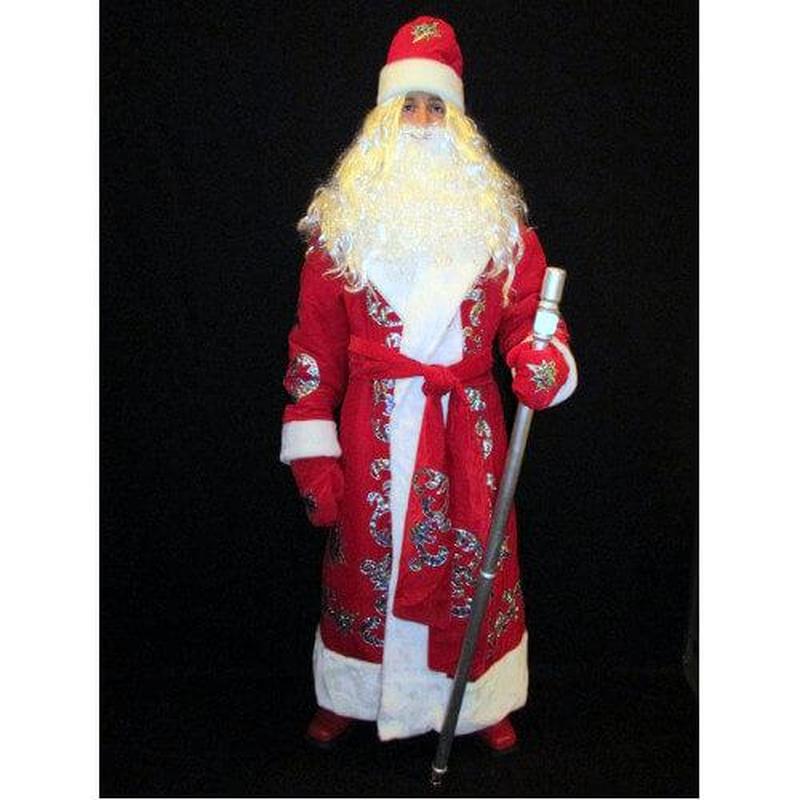 Костюм Св.Миколая/Д.Мороза ВЕЛИЧНИЙ АЛИЙ-4 р-р 52-56, 58-60 Код 107794 В наявності 1. 52-56 (довжина: 140 см, ширина: 71см) 2. 58-60 (довжина: 145 см, ширина: 81 см) Комплект-костюм Діда Мороза «ВЕЛИЧНИЙ АЛИЙ-4» один з найходовіших і найпопулярніших комплектів у яскраво-червоній кольоровій гамі в нашій колекції! У комплект костюма входить: 1. Шуба Діда Мороза на підкладці з червоно-червоного щільного оксамиту, з аплікаціями на полицях шуби, рукавах і спині, облямована білим хутром 2. Шапка на підкладці, з червоно-червоного щільного оксамиту, облямована хутром, з двосторонніми аплікаціями 3. Пояс із червоно-червоного щільного оксамиту з аплікаціями. 4. Рукавиці на підкладці, з червоно-червоного щільного оксамиту, облямовані хутром, з аплікаціями 5. Борода «Студена». Код 02728. Довжина – 35-37 см, вага – 70 грам 6. Перука «Сніговий блиск». Код 01701. Довжина 50-55 см, вага 220 грам 7. У комплект костюма Діда Мороза «ВЕЛИЧНИЙ АЛИЙ-4» НЕ ВХОДЯТЬ (можна придбати на нашому сайті додатково): - Посох Діда Мороза (можна вибрати будь-який за розміром, довжиною, типом верхівки, кольором і матеріалом виготовлення, конструкції (збірний або цільний) та ціною посох Діда Мороза з урахуванням вашого смаку та потреб). - Чоботи або валянки Діда Мороза (можна купити додатково на нашому сайті) різні за технологією виготовлення, матеріалом, висотою халяви, ціною - чоботи або валянки Діда Мороза. - Штани Діда Мороза (можна купити додатково на нашому сайті). Є всі розміри штанів, на будь-яке зростання. Кольори – червоний, синій, бордовий. - Мішок для подарунків (можна вибрати будь-який за розміром, тканиною, кольором і колірними відтінками, з декором і без, із зав'язками простими або зі шнуром і хутряними помпонами). - Мікрофон портативний з підсилювачем та динаміком та модератором-змінником голосу.