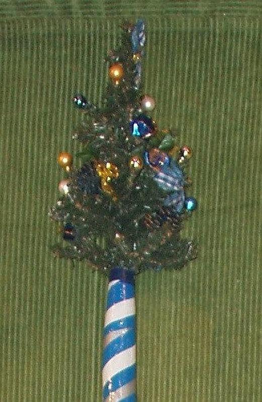 Посох св. миколая/діда мороза дерев'яний цільний - зимова ялинка
