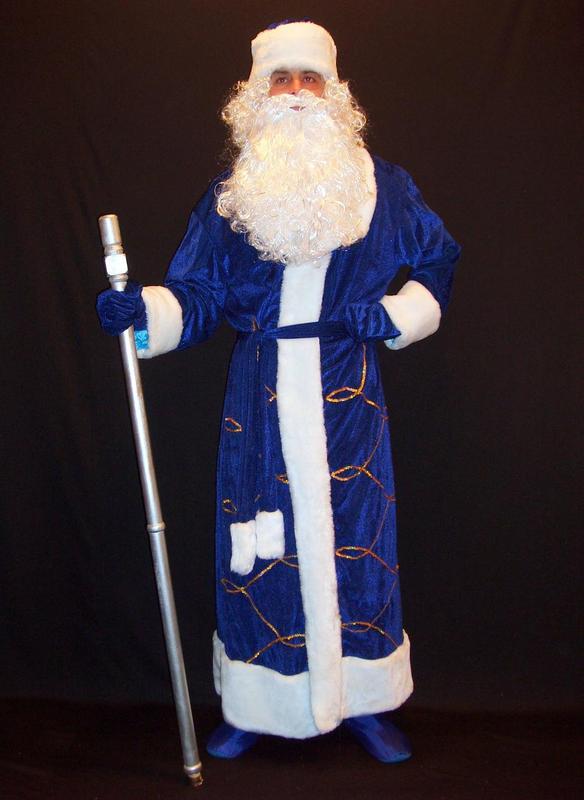 ## Костюм Св.Миколая/Д.Мороза ОКСАМИТОВИЙ СИНІЙ-1 р-р 48-56 Код 107981 Комплект-костюм Діда Мороза «Оксамитовий Синій-1» відшитий в одному універсальному розмірі - чудово підійде в рамках розмірів 48-56 і на зріст від 170 до 195 см У комплект костюма входить: Шуба Діда Мороза на підкладці з ГЛИБОКО-СИНЬОГО ЩІЛЬНОГО СТРЕЙЧ-ВЕЛЮР- Оксамита, облямована білим хутром-мутоном, з вишивкою золотистими, що переливаються на світлі, паєтками на полицях шуби. Шапка на підкладці, з ГЛИБОКО-СИНЬОГО ЩІЛЬНОГО СТРЕЙЧ-ВЕЛЮР-Оксамиту, облямована хутром мутоном. Пояс із ГЛИБОКО-СИНЬОГО ЩІЛЬНОГО СТРЕЙЧ-ВЕЛЮР-ОКСАМИТУ з хутряними облямівками на кінцях. Рукавиці на підкладці, з ГЛИБОКО-СИНЬОГО ЩІЛЬНОГО СТРЕЙЧ-ВЕЛЮР-Оксамиту, облямовані хутром. У комплект костюма Діда Мороза «Оксамитовий Синій-1» НЕ ВХОДЯТЬ (можна придбати на нашому сайті додатково): - Борода Діда Мороза (можна вибрати будь-яку за розміром, довжиною, пишнотою, якістю волосся і ціною БОРОДУ Діда Мороза з урахуванням вашого смаку та потреб). - Перука Діда Мороза (можна вибрати будь-яку за розміром, довжиною, пишнотою, якістю волосся та ціною перуку Діда Мороза з урахуванням вашого смаку та потреб). - Посох Діда Мороза (можна вибрати будь-який за розміром, довжиною, типом верхівки, кольором і матеріалом виготовлення, конструкції (збірний або цільний) і ціною посох Діда Мороза з урахуванням вашого смаку та потреб). - Чоботи або валянки Діда Мороза (можна купити додатково на нашому сайті) різні за технологією виготовлення, матеріалом, висотою халяви, ціною - чоботи або валянки Діда Мороза. - Мішок для подарунків (можна вибрати будь-який за розміром, тканиною, кольором і колірними відтінками, з декором і без, із зав'язками простими або зі шнуром і хутряними облямівками). - Мікрофон портативний з підсилювачем та динаміком та модератором-змінником голосу.