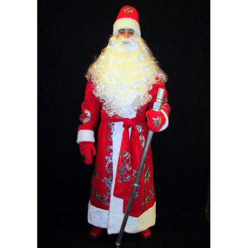 Костюм Св.Николая/Д.Мороза ВЕЛИЧЕСТВЕННЫЙ АЛЫЙ-6 р-р 52-56, 58-60 Код 107796 В наличии размеры костюмов: 1. 52-56 (длина: 140 см, ширина: 71см) 2. 58-60 (длина: 145 см, ширина: 81 см) Комплект-костюм Деда Мороза «ВЕЛИЧЕСТВЕННЫЙ АЛЫЙ-6» один из самых ходовых и популярных комплектов в ярко-красной цветовой гамме в нашей коллекции! В комплект костюма входит: 1. Шуба Деда Мороза на подкладке из красно-алого плотного бархата, с аппликациями на полках шубы, рукавах и спине, отороченный белым мехом 2. Шапка на подкладке, из красно-алого плотного бархата, отороченная мехом, с двухсторонними аппликациями 3. Пояс из красно-алого плотного бархата с аппликациями. 4. Рукавицы на подкладке, из красно-алого плотного бархата, отороченные мехом, с аппликациями 5. Мешок для подарков (60 х 60 см) га подкладке, из красно-алого плотного бархата, с регулируемыми завязками на резинке, с двухсторонними аппликациями. 6. Реалистичная большая Борода «ЗНАТНАЯ» Код 02716. Длина – 55 см., вес – 125 грамм 7. Великолепный длинный парик «Белый снег» под стать бороде. Код 01704. Длина 55-65 см, вес 145-150 грамм) В комплект костюма Деда Мороза«ВЕЛИЧЕСТВЕННЫЙ АЛЫЙ-6» НЕ ВХОДЯТ (можно приобрести на нашем сайте дополнительно): - Посох Деда Мороза (можно выбрать любой по размеру, длине, типу верхушки, цвету и материалу изготовления, конструкции (сборный или цельный) и цене посох Деда Мороза с учётом вашего вкуса и потребностей. - Сапоги или валенки Деда Мороза (можно купить дополнительно на нашем сайте) различные по технологии изготовления, материалу, высоте голенища, цене - сапоги или валенки Деда Мороза. - Брюки Деда Мороза (можно купить дополнительно на нашем сайте). Есть все размеры брюк, на любой рост. Цвета – красный, синий, бордовый. - Микрофон портативный с усилителем и динамиком и модератором-изменителем голоса.