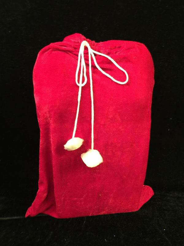 ## Мішок Св.Миколая/Діда Мороза/Санти (73*48 см) ЧЕРВОНИЙ велюр-оксамит. Код 12012 Мішок для подарунків з яскравого червоного велюр-оксамиту з хутряними кульками на кінцях зав'язочок. Місткий, зручний. Підійде до будь-якого костюма, виконаного в червоних, бордових, сріблястих, золотистих тонах. розмір 48 х 73 см