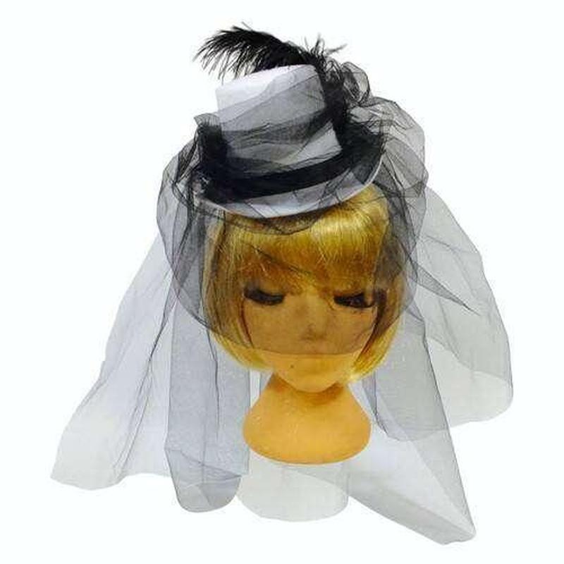 Наездница. белая шляпка цилиндр с чёрным фатином и пером карнавальная на резинке