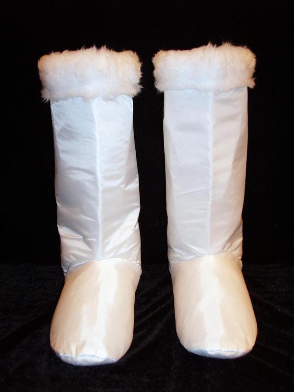 Чоботи карнавальні Св. Миколая/Діда Мороза/казкові герої БІЛІ ВИСОКІ (розмір 47) - ШВИДКІ Висота чобіт від підлоги у розмірі 41-41 = 38 см, у розмірі 43-44 = 39.5 см, у розмірі 45-46 = 40.5 см. Дуже популярна і, що дуже важливо, дуже доступна за ціною модель легких чобіток. І наших покупців неважко зрозуміти. якщо розібратися в перевагах цієї моделі: · Чоботи легкі та комфортно триматися на нозі · Гарні, яскраві, міцні. · Зручні, не сковують рухів та не обмежують рухливість. · Легко та безпроблемно стираються без линяння та втрати кольору, форми (відновлюються після прання, як нові) · Недорогі, як для взуття, що купується на кілька років Ну, а до об'єктивних даних додамо, що підошва у них повстяна. Тканина двошарова: зверху – щільна, міцна, вологостійка, що миється (типу курткової «плащівки» з прогумованим просоченням). Підкладка (внутрішній шар) – зміцнена, тепла, фетрова, «дихаюча», утеплена, Спеціальний гігієнічний матеріал білого кольору, який чудово зберігає і завжди тримає форму чобіт. Зверху халяви чобіт облямовані білим хутром. Рекомендоване використання – у будь-яких приміщеннях або на сухому асфальті. Мокра погода, мокрий сніг (при необхідності рекомендуємо використовувати додатково - калоші) Решта – дивіться на якісних фотографіях. Все видно. як на рентгені (смайлик посмішки). І найважливіше! Шановні Діди Морози! Будь ласка, уникайте виступати в костюмі Діда Мороза, з-під якого стирчать кеди, кросівки або чорні (коричневі) «цивільні» туфлі: цим Ви дискредитуєте не тільки себе особисто, а й ганьбите ПРОФЕСІЮ! Приємних покупок у нашому класному магазині!