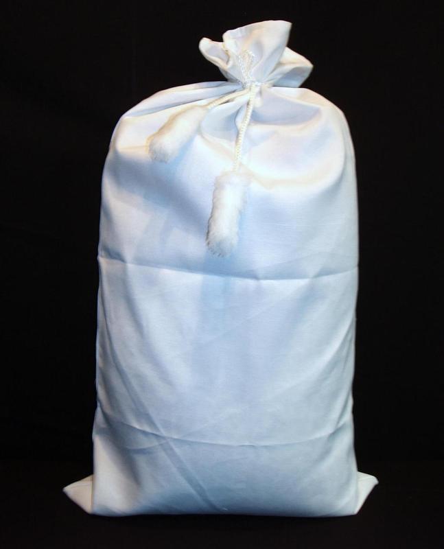 Мішок Св.Миколая/Діда Мороза/Санти (70х48 см) СНІЖИНКА БІЛИЙ. Код 12151 ## Загальні дані про мішок для подарунків «СНІЖИНКА» - мішок для подарунків БІЛОГО кольору (70 х 48 см) з БІЛИМИ зав'язками, прикрашеними хутряними нарядними помпонами, виготовлений з якісної напівсинтетичної сумішевої, дуже міцної і щільної, тканини БІЛОСНІЖНО-БІЛОГО кольору . Зав'язки декоровані узліссями зі штучного короткостриженого хутра класу «мутон». Зав'язки збільшеної довжини, щоб було можливо зав'язати мішок з подарунками красивим вузлом і при цьому щоб залишалася довжина вільних (після перев'язки) достатньої зав'язки, щоб вони звисали, прикрашаючи сам мішок. Крім того, зав'язки вшиті в шов мішка, щоб вони завжди знаходилися «при мішку» і ніколи не загубилися. Тканина, з якої виготовлений мішок відмінно переться, практично не меніться і тому завжди має чудовий свіжий вигляд. Крім того, ви можете прати мішок разом із вшитими в нього зав'язками разом із хутряними помпонами, які також «не бояться прання». Також після прання, як тканина, так і зав'язки, включаючи їх хутряний декор, не дають усадки, не деформуються, не линяють, зберігають первісну форму і відмінний зовнішній вигляд. Мішок прошитий якісними зміцненими армованими нитками, які забезпечують міцність виробу і дають можливість навантажувати його досить важкими подарунками без побоювання, що він може розпоротися по швах у самий невідповідний момент! Розміри мішка підібрані вдало і можуть бути рекомендовані як найбільш оптимальні. Об'єктивні розміри новорічного мішка та характеристики - ВИСОТА – 70 см, - Ширина - 48 см. - КОЛІР – СНІЖНО-БІЛИЙ Призначення, застосування та використання мішка для подарунків Цей новорічний подарунковий мішок підійде до будь-якого костюма , виконаного в СИНІХ, БЛАКИТНИХ, БІРЮЗОВИХ, СРІБНИХ і БІЛИХ кольорах або для костюмів, де перелічені кольори комбінуються у разі, якщо сам розмір мішка та його місткість відповідає подарунків, якими він наповнюватиметься. Якщо сумніваєтеся у розмірі мішка, тобто, чи достатня буде його місткість – краще не ризикувати, а підібрати подарунковий мішок більшого розміру (добре у нас на сайті є неймовірно великий вибір мішків найрізноманітніших розмірів та кольорів) Оцініть - чи потрібен вам цей мішок і чи варто його купувати? Ми пропонуємо цей важливий аксесуар костюма для наступних категорій покупців (виберіть, що вам більше підходить з перерахованого): 1. Для тих, хто втратив мішок у ході використання свого карнавального костюма, і тепер новорічний костюм не доукомплектований. 2. Для тих, у кого існуючий мішок поплескався і має вже непривабливий вигляд. З таким мішком, звичайно, вже соромно якось, а тим паче зберігати нові подарунки на Новий Рік у старому мішку, погодьтеся, – нонсенс!). 3. Для тих, у кого існуючий мішок незручний і з ним неприємно через це працювати (можливо погано зав'язуються зав'язки, вони короткі або щось інше вас вже давно «дратує») 4. Для тих, у кого існуючий мішок занадто вузький або занадто низький, занадто маленький - тобто. Великого мішка для подарунків не буває: чим більше мішок, тим зручніше в ньому переносити та розташовувати (компонувати) подарунки і тим загадковішим він виглядає! 5. Для тих, кому просто набрид уже старий мішок і його просто потрібно оновити. 6. Для тих, хто купив костюм в комплектації без мішка і треба просто 