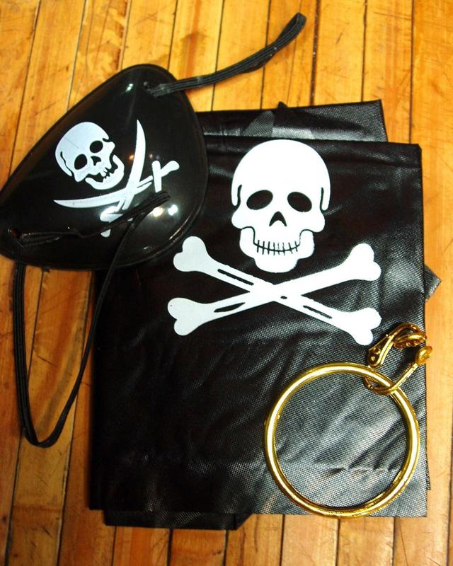 Набір пірата 3 предмети: бандана чорна з черепом, наочник, сережка піратська
