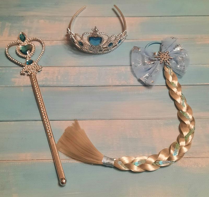 Набір прикрас Frozen, принцеси Ельзи. В наборі: діадема, косичка на резинці з бантиком 45 см, чарівна паличка.