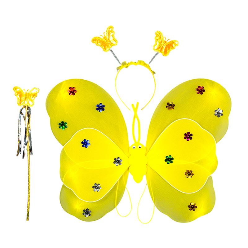 Карнавальний набір для дівчинки метелик фея жовта подвійні крила 3 в 1: крила, хапочка, об...