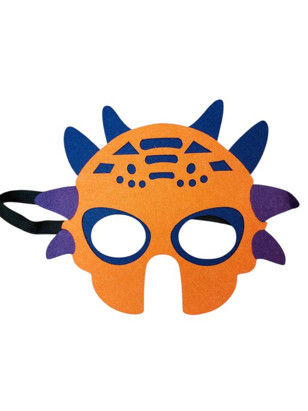 Маска Динозавр. Розмір: one size, 15 на 19 см. Колір: помаранчево-синій. Матеріал: фетр.