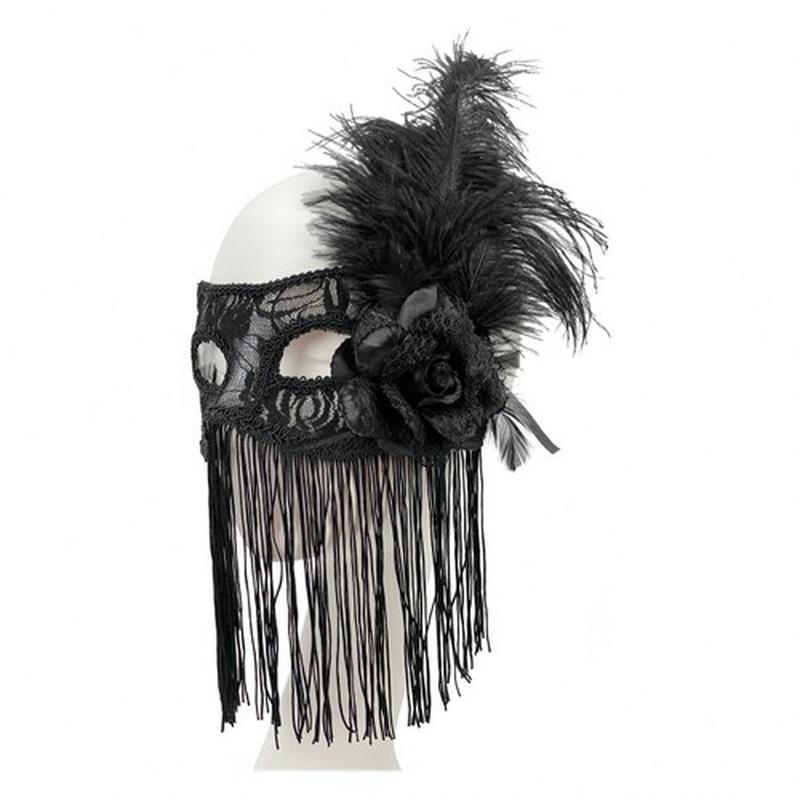 Маска бальна з пером і бахромою