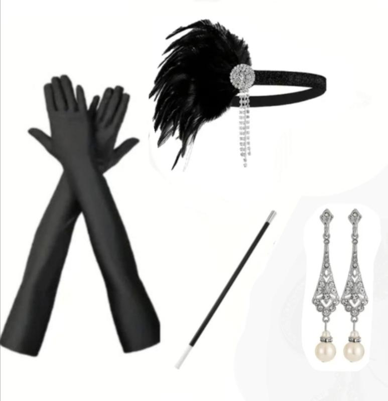 Набір аксесуарів у стилі гетсбі сережки, мундштук, рукавички, пов'язка з пір' ям