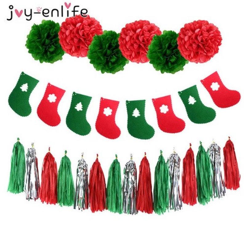 Набір новорічних прикрас. В набір входить: - 1 гірлянда. - 6 помпонів - 20см. - 15 паперових кистей - 35см. Колір: різнобарвний.