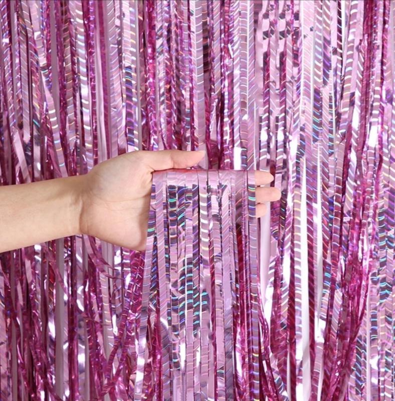 Дощик для фотозони з блискучою голограмою 2 м на 1 м рожевий