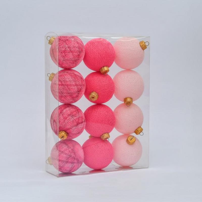 Набір ялинкових іграшок із ниткових кульок 6,5 см, 12 шт рожевий мікс