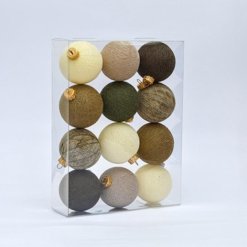 Набір ялинкових іграшок із ниткових кульок 6,5 см, 12 шт коричневий мікс
