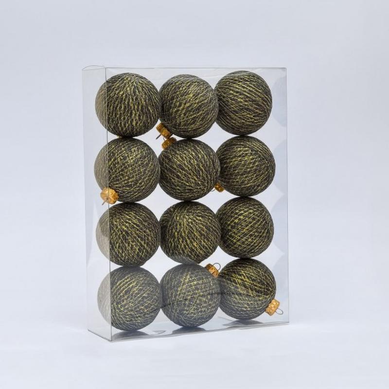 Набір ялинкових іграшок із ниткових кульок 6,5 см, 12 шт чорне золото