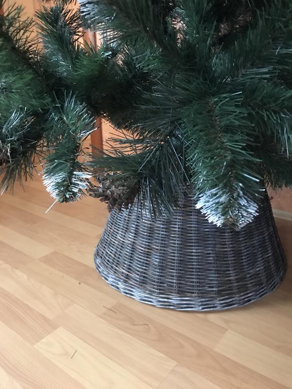 Стильне декорування кронштейна для ялинки. Плетіння міцне. Нижній діаметр 53 см, верх 32 см, висота 25 см Без дна. Екологічні матеріали. В подальшому можна використовувати для зберігання іграшок або в інтер'єрі .