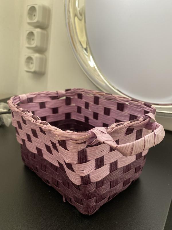 Декоративний кошик невеликого розміру, виконаний у фіолетовому кольорі. Ідеально підходить для зберігання дрібниць, косметики, рукоділля або як елемент декору. Завдяки компактним розмірам легко розміститься на полиці, туалетному столику чи в шафі. Доповнить інтер’єр у будь-якому стилі — від класики до модерну. Розміри: Ширина: 17 см Глибина: 13 см Висота: 10 см