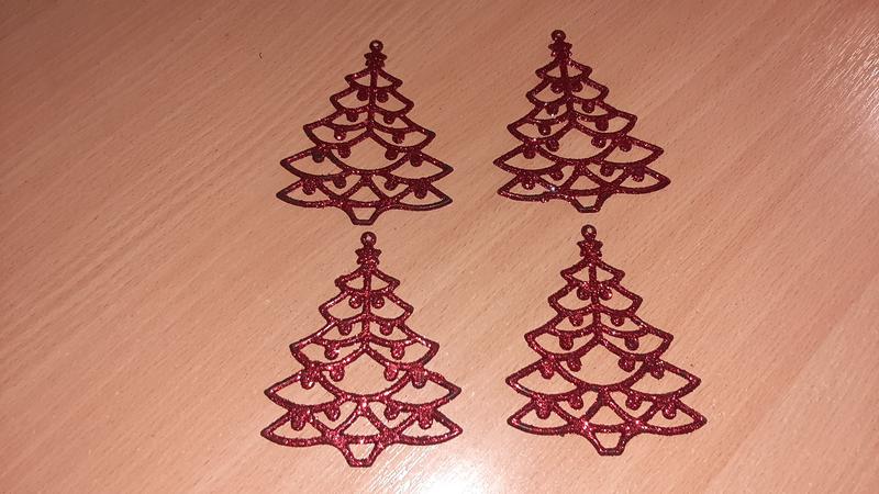 Уважно читайте умови пересилки! Пересилка товара укроштой на сумму от 150 гривен с Оплатой на карту. Безопасным заветом пересашиваю товар на сумму от 300 гривен. На передвижные элементы безопасной оплатой не пересасываю, только полная оплата на карту. Пересласка товара новой по почте от 200 гривен, оплата только на карту. Перед любой покупкой, любого товара писать продавцу для уточнения Украшение Елка для декора, или как украшение на елку. Цвет красный Изготовлены из пластика и украшены глиттером. Каждая из них имеет размеры 10,5х 8,5х 0,4см Цена указана за одну елку