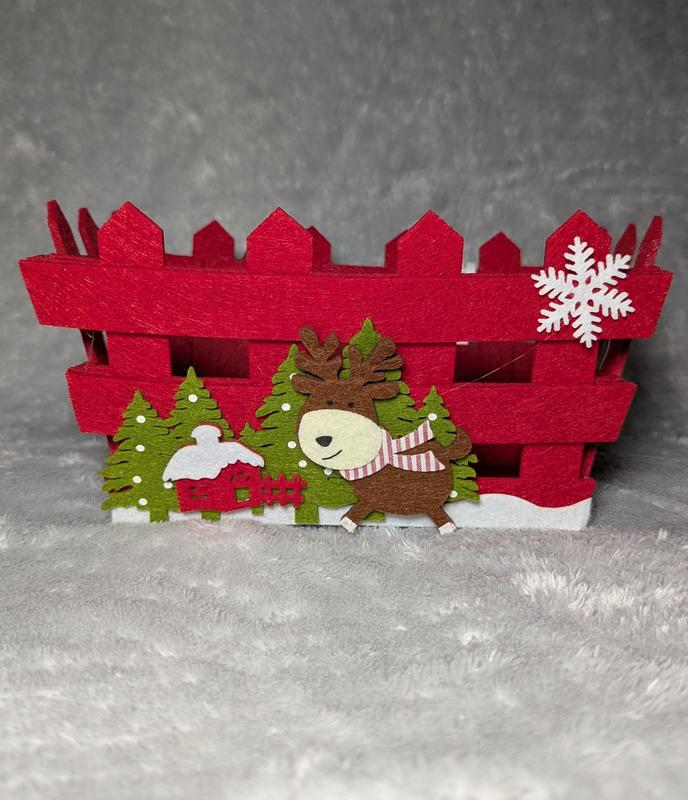 Цей декоративний кошик від Livarno Home, виготовлений з міцного фетру, стане чудовим елементом новорічного декору. Яскраво-червоний колір і прикраси у вигляді оленя, сніжинки та зимового пейзажу підсилять святковий настрій у вашому домі. Кошик ідеально підходить для зберігання маленьких новорічних сувенірів, солодощів чи подарунків. Завдяки своїм компактним розмірам (18.5x12.5x12.5 см) він не займе багато місця, але приверне увагу своїм стильним дизайном.