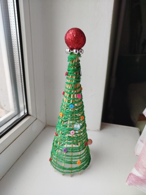Новорічно-різдвяний декор для дому у вигляді ялинки створить святковий настрій і затишок у вашій оселі. Ручна робота. Висота: 22 см. До ялинки іде в подарунок електрична чайна свічка з батарейками (ставиться під ялинку) - можна використовувати як невеличкий світильник. Відправка будь-якою поштою або самовивіз у Києві. При доставці поштою безкоштовна надійна упаковка