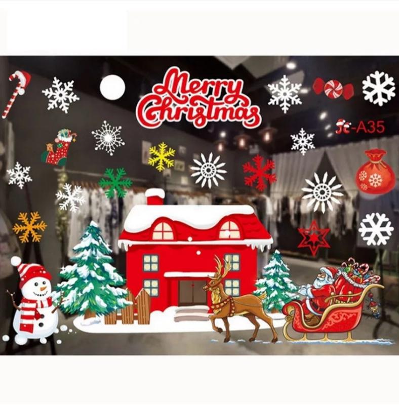 Наклейки для нового року на вікна 50 на 70 см різнобарвний