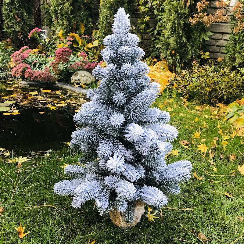 Компактна штучна лита ялинка виглядає ошатно навіть без додаткових прикрас. Всі голочки - литі, точна 3D імітація хвої живої ялинки. Встановлена у горщик, прикрашений мішковиною, з обважнювачем всередині - для захисту від перекидання. Об'ємне густе напилення на ялинці реалістично імітує сніг, який тільки що впав на гілки пухнастими пластівцями. Матеріалом розпилення є натуральна бавовна, він екологічний і не має запаху, безпечний для дітей і дорослих. Відмінний декор для дитячої кімнати, офісного столу, оформлення вітрини магазину або кафе. Може стати чудовим новорічним подарунком.