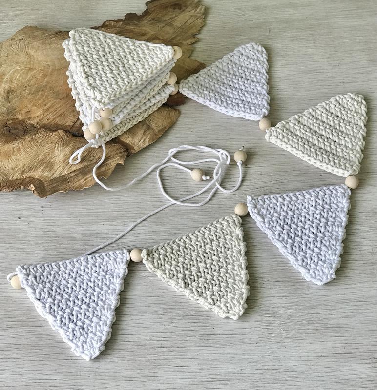 Гирлянда из 12 флажков для оригинального декора, праздников, ручная вязка крючком, цвет бе...