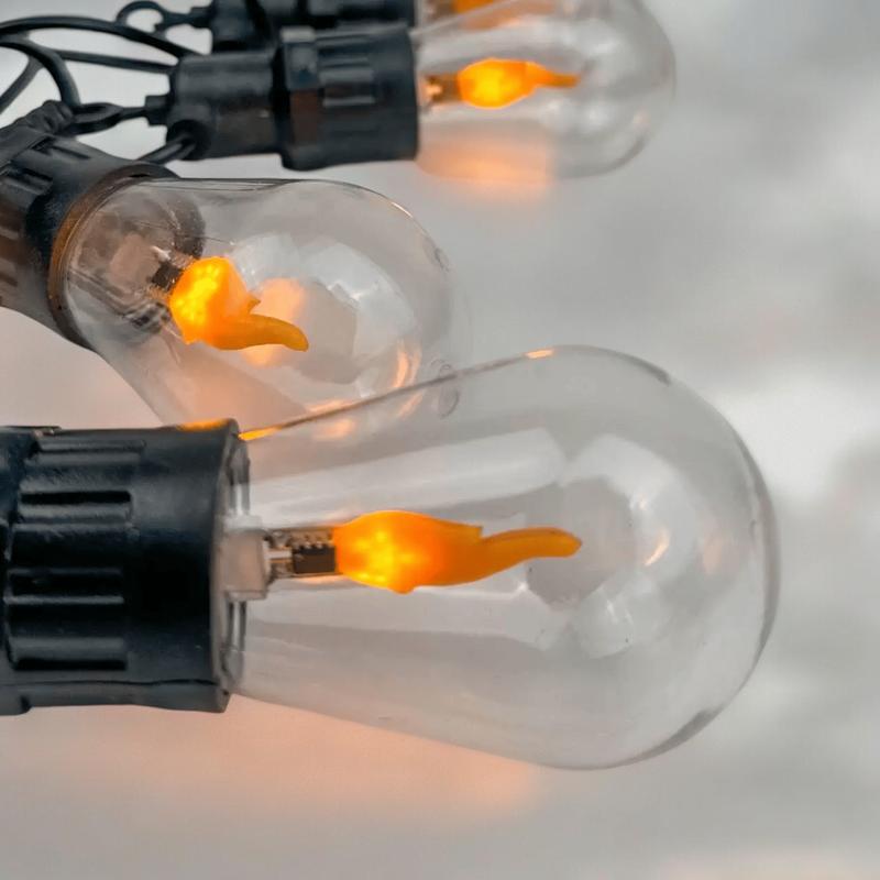 Гірлянда з великих лампочок гірлянда з крупних лампочок гірлянда вулична тепле світло Вулична гірлянда у ретро-стилі з імітацією вогню стане чудовим доповненням вашого саду чи будинку, створюючи теплу та затишну атмосферу. Вона може стати стильним елементом інтер'єру або додатковим освітленням у приміщеннях. Її класичний дизайн дозволяє прикрашати альтанки, веранди, дерева та чагарники, а також використовувати в екстер'єрі кафе та ресторанів. Якщо вам потрібна така гірлянда більшої довжини, ви можете придбати до 12 шт таких же гірлянд, з'єднати їх між собою та отримати гірдянду завдовжки до 60 метрів. При замовленні цього товару від 2-х одиниць - Безкоштовна доставка у подарунок! Завдяки високому класу водонепроникності IP44, вона витримує дощ, сніг та вологу, що робить її універсальною для використання як усередині, так і зовні.У лампочках використовується технологія Filament LED, яка забезпечує оптимальний світловий потік у поєднанні із низьким енергоспоживанням. Характеристики: - Кількість лампочок: 10 - Довжина: 5 м, підвідний кабель - 70 см - Напруга: 220 В - Кут свічення: 300° - Колір: жовтий - Цоколь: E27 - Діаметр лампи – 4,5 см - Матеріал лампочки: пластик, що не б'ється - Відстань між лампочками – 50 см - Світіння мерехтливе, з ефектом горіння полум'я - Гідроізольована, IP44, призначена для використання як у приміщенні, так і на вулиці Переваги: - Високий клас водонепроникності для надійності за будь-якої погоди. - Створює затишну атмосферу для урочистостей. - Легко встановлюється та підходить для різних типів оформлення. Заходи безпеки: - Не розбирайте та не модифікуйте гірлянду без консультації з фахівцем. - Уникайте використання у місцях з високою вологістю без належного захисту.