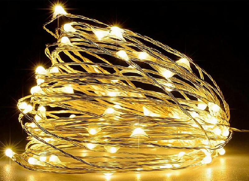 Гірлянда роса на батарейках 100ledww 3*aa колір тепло-білий 10м.