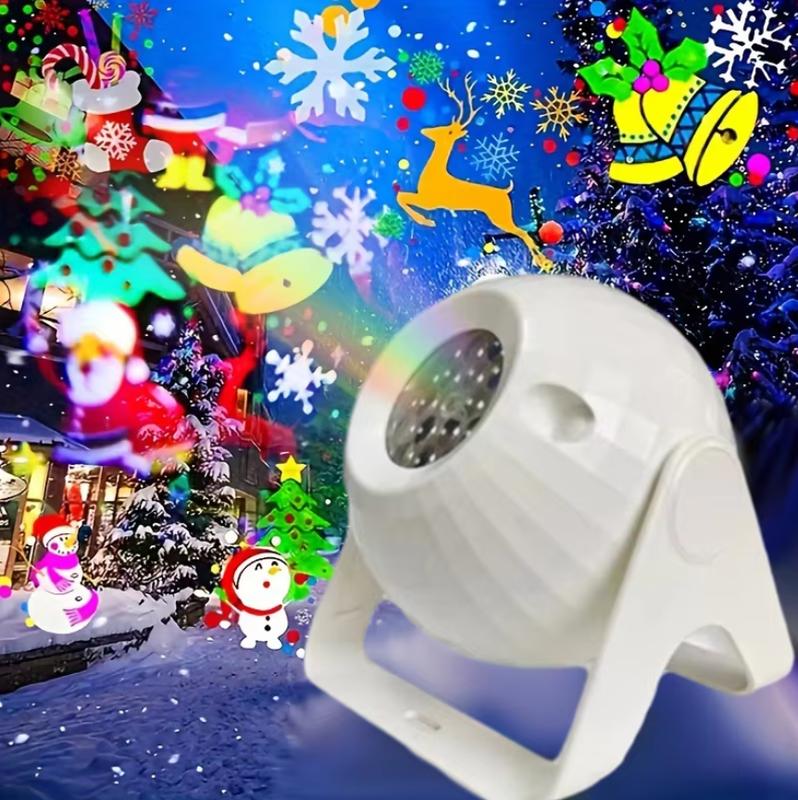 Новорічна лазерна установка-проєктор / проєктор для дому з кронштейном Лазерний пластиковий проєктор для прикрашання кімнати, приміщення магазину або офісу, а також зовнішніх стін приміщень, оскільки має вологостійкі властивості корпусу, може використовуватися в будь-яку погоду. Особливість лазерного проєктора: Використовує оптичні рішення нового покоління, надяскраві намистини ламп, кількість візерунків збільшена вдвічі (більш шокуючи візуальні ефекти), ніж традиційне рішення, яскравість збільшується в 1 раз, а відстань чіткої проєкції становить понад 8 метрів. Немає потреби міняти карту вручну, продукт має вбудований проєкційний шаблон, Патрон лампи можна повертати на 360 градусів. Характеристики лазерного проєктора Напруга: DC5V/2A Потужність: МАКС. 10 Вт Загальна потужність світлодіодного джерела світла: 3 Вт Відстань проєкції: 3-8м Площа проєкції: 5-10м2 Робоча температура: -20 °C +50 °C Ступінь водонепроникності: IP65 для освітлення, IP44 для адаптера живлення