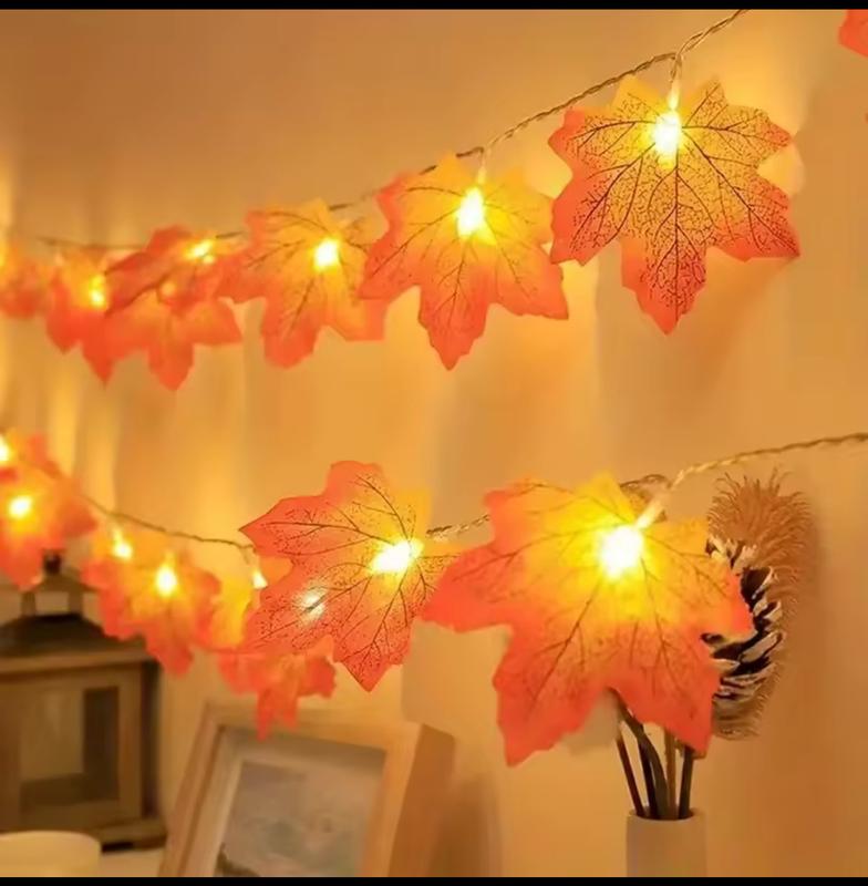 Світлодіодна гірлянда з листочків клена, 20 діодів Світлодіодний дизайн у вигляді кленового листа: виріб оснащений гарною світлодіодною гірляндою у вигляді кленового листа, яка додасть частинку природи до вашого будинку або вуличного декору. Живлення від батарейок (3 батарейки типу АА): ці гірлянди працюють від батарейок, що забезпечує зручність та простоту використання у будь-якому місці. Універсальне використання: ці світильники ідеально підходять для домашніх вечірок, свят, оформлення сцен чи прикрас приміщень на відкритому повітрі, вони універсальні та покращують будь-яку атмосферу. Батарейки в комплект не входять.