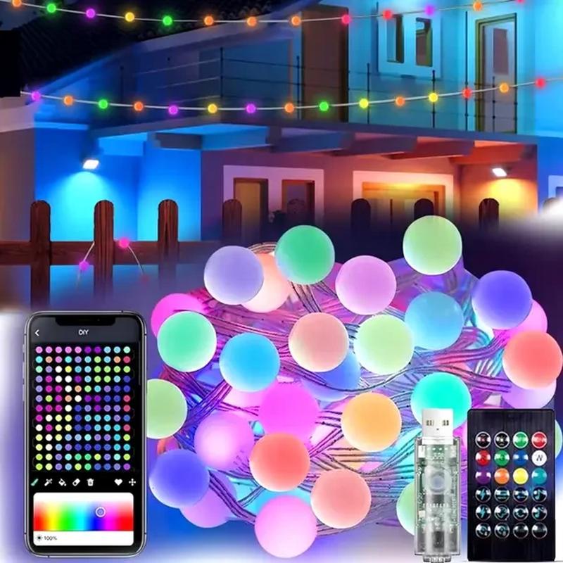 Гирлянда на елку матовый шарик 10 метров с пультом usb bluetooth управления с телефона мод...