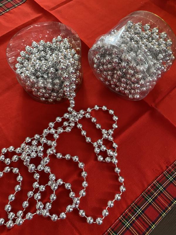 Витончена різдвяна прикраса у вигляді гірлянди, прикрашена блискучими срібними намистинами. Ця унікальна прикраса додасть святкового настрою вашій ялинці та створить атмосферу казки у вашому домі. В наявності дві штуки, ціна за одну. (5 м)