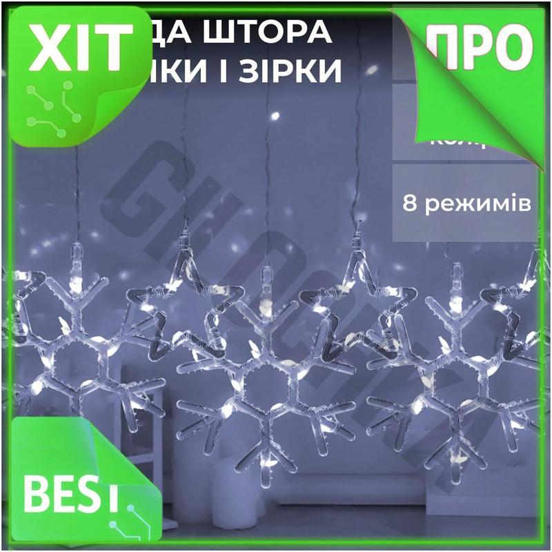 Ve гірлянда штора 3х0, 9м new version світлодіодна зірка сніжинка 145 led лампочок для свя...
