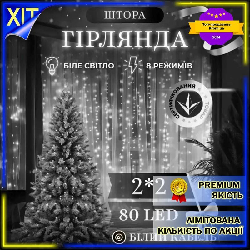 Dm новогодняя гирлянда штора спецификация 2.2 2х2 м 80 led комнатная белый провод для деко...