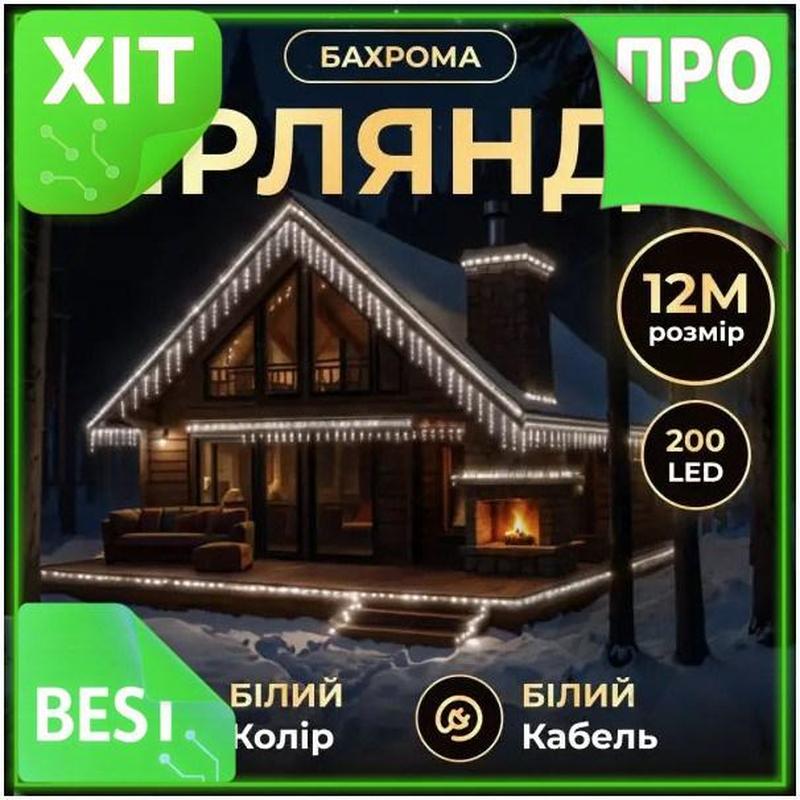 Ve вулична гірлянда бахрома 12 new version м 200 led білий провід для святкового оформленн...
