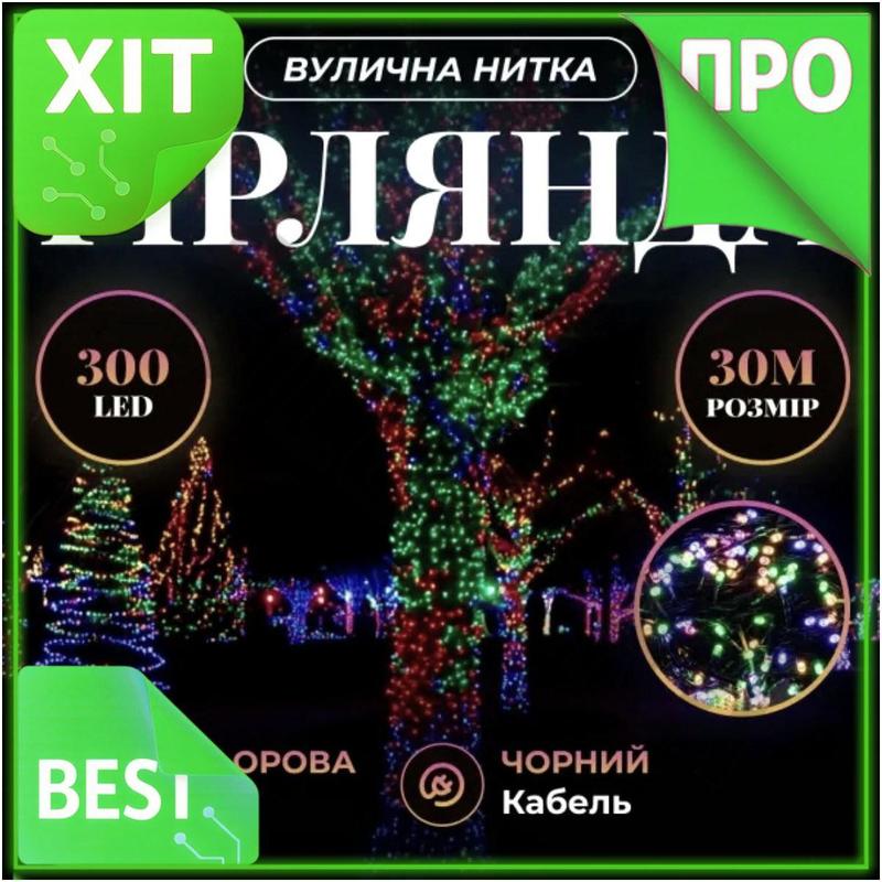Ve гірлянда нитка вулична 30м new version 300 led чорний провід мультиколор для святкового...